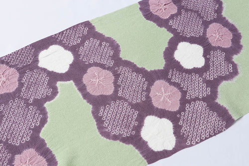 梅 帯揚げ 正絹 絞り 春 梅柄 若草色 紫 衿秀 高級 和服 着物 しゃれ袋 名古屋帯 おしゃれ カジュアル 袷 単衣 お茶会 付下げ 色無地 小紋 紬 木綿 着付け小物 帯あげ 和装小物
